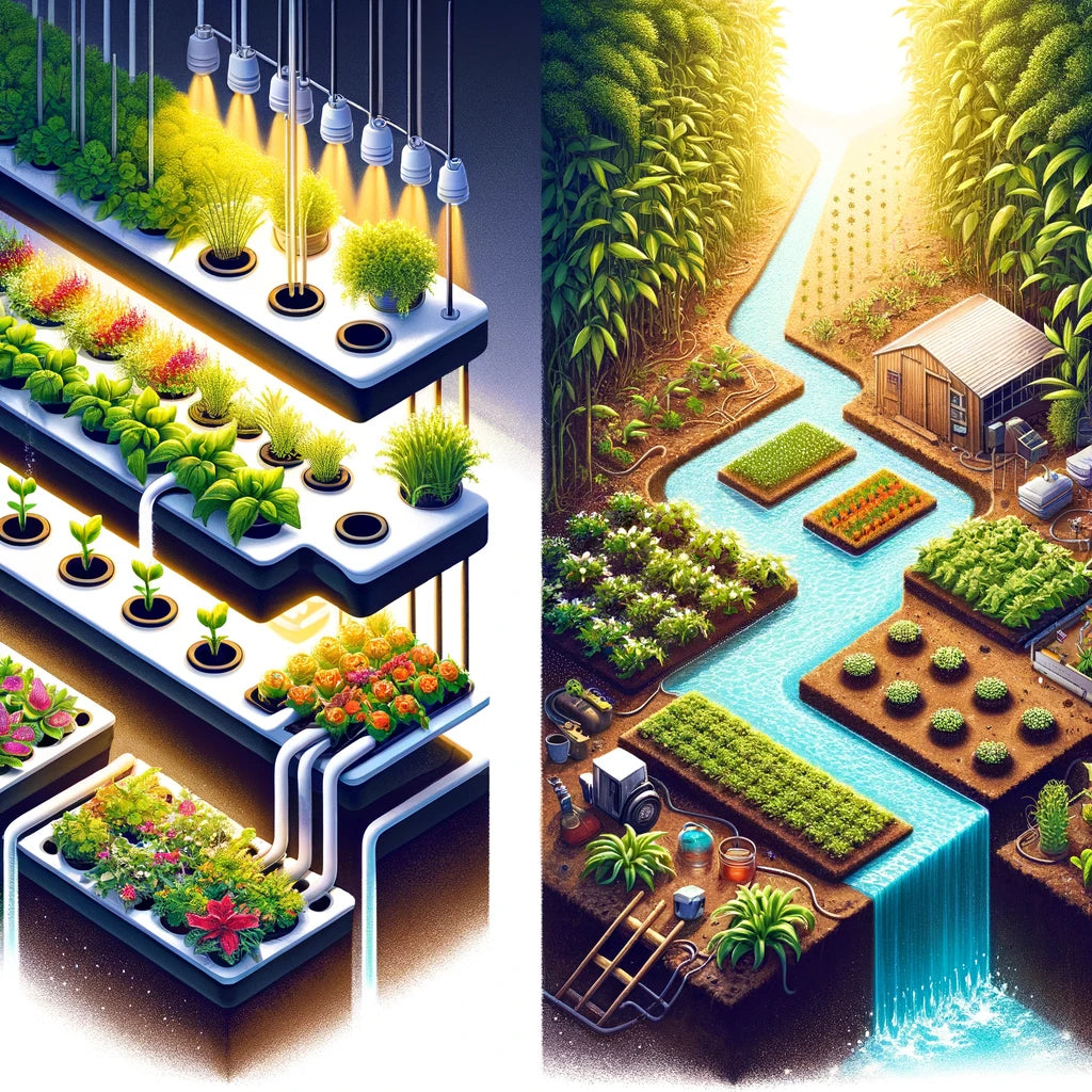 Hydroponics allows for greater control over nutrient balance, resulting in efficient nutrient use and faster plant growth. Traditional soil gardening can be affected by variable soil quality and environmental conditions, and typically requires more space and labor, including tilling, weeding, and pest management. These challenges are eliminated in hydroponic setups, highlighting its efficiency and cleanliness.