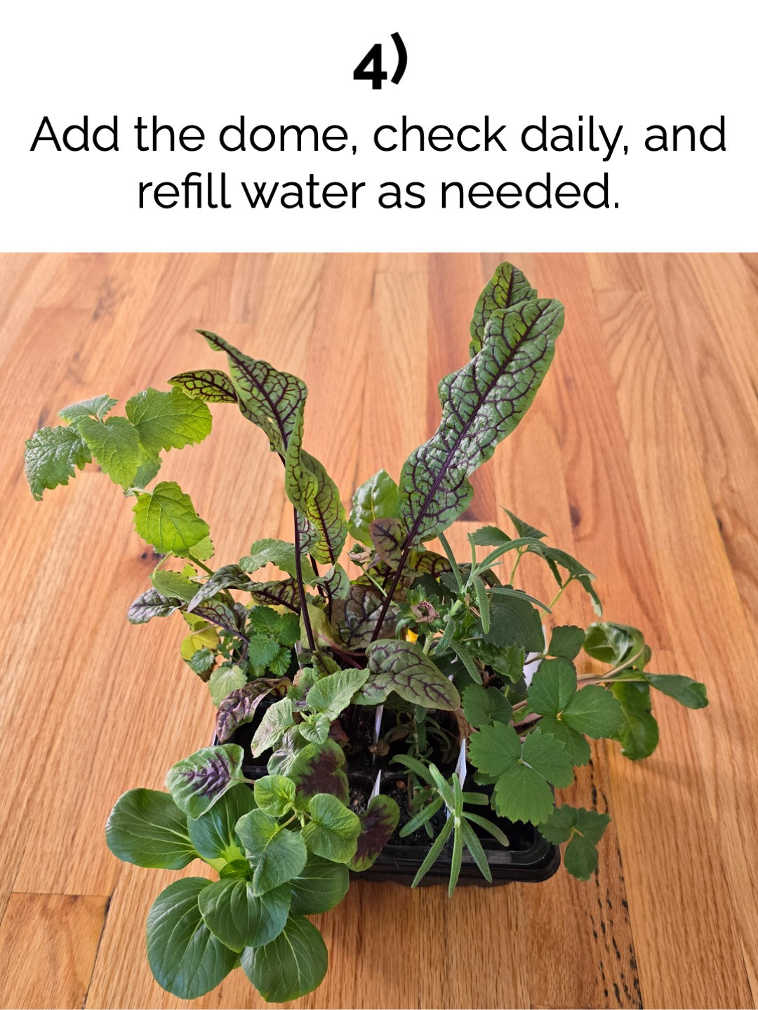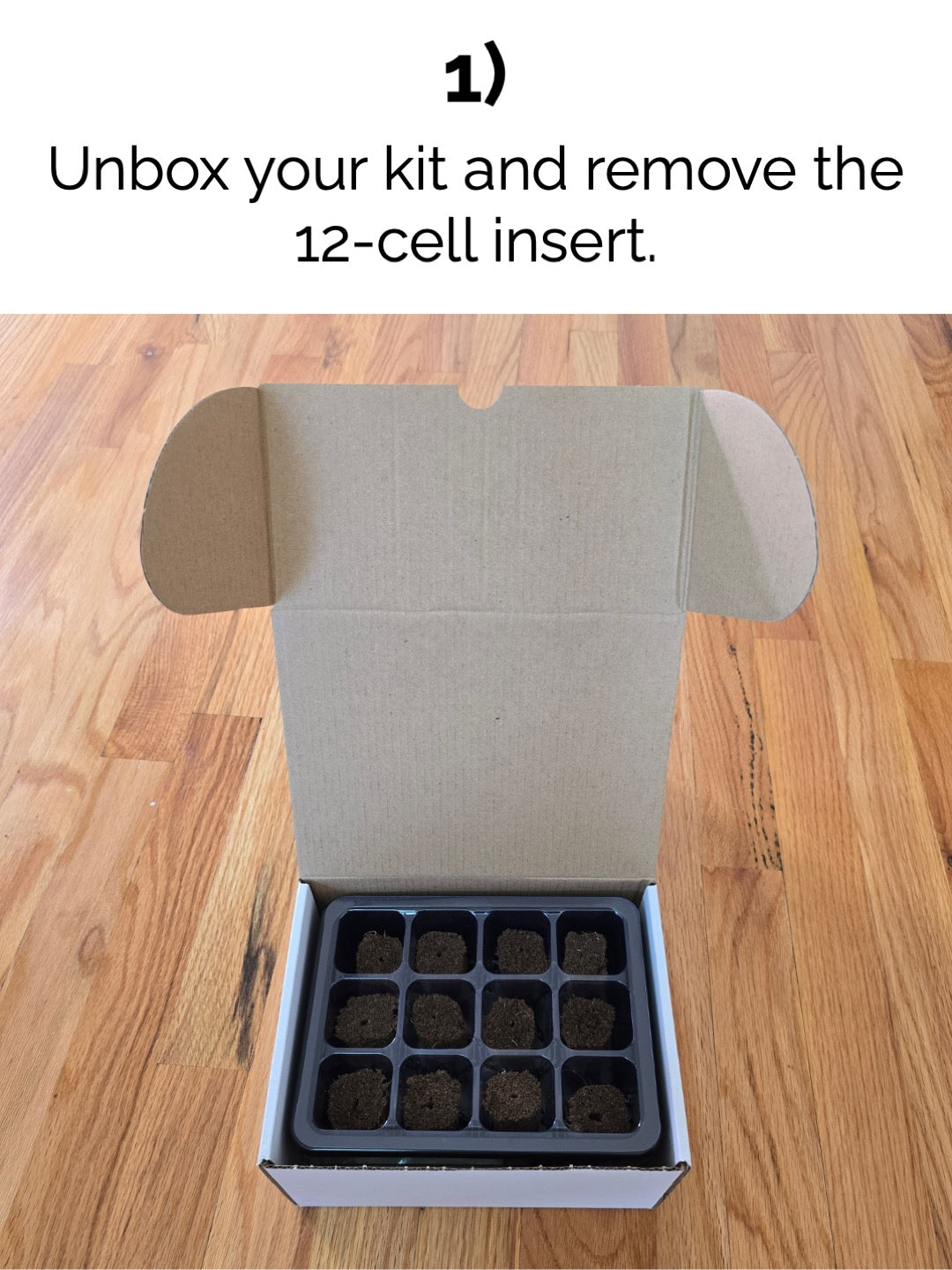 - Remove the 12-cell insert and place a compostable microgreens mat—ready in 7–15 days.