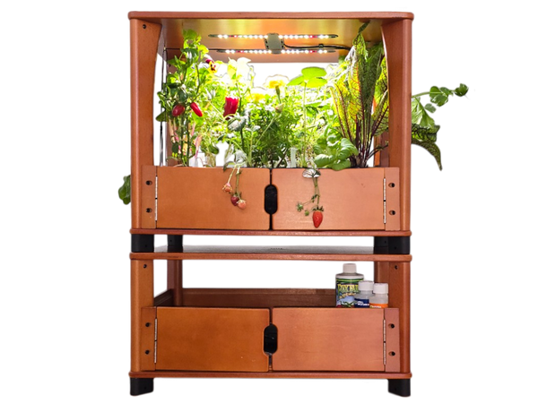 Home Farm and a Storage Unit to neatly organize your tools, grow mediums, air pump, and more. Perfect for year-round growing without the mess.